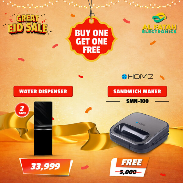 Homz 2 Taps Water Dispenser HWD-4002 with Refrigerator Compartment With Free Homz Sandwich Maker